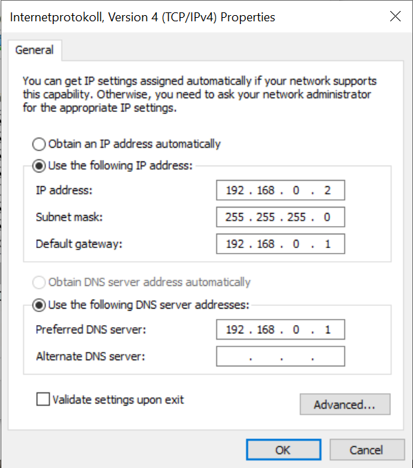 The $IP field must be filled with the static IP address of the computer, the $PORT field with the opened port of the PC.